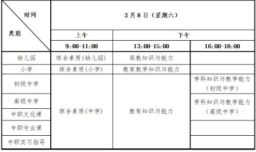 全国统一考试日期2025年3月8日,各类别考试科目与时间安排如下: