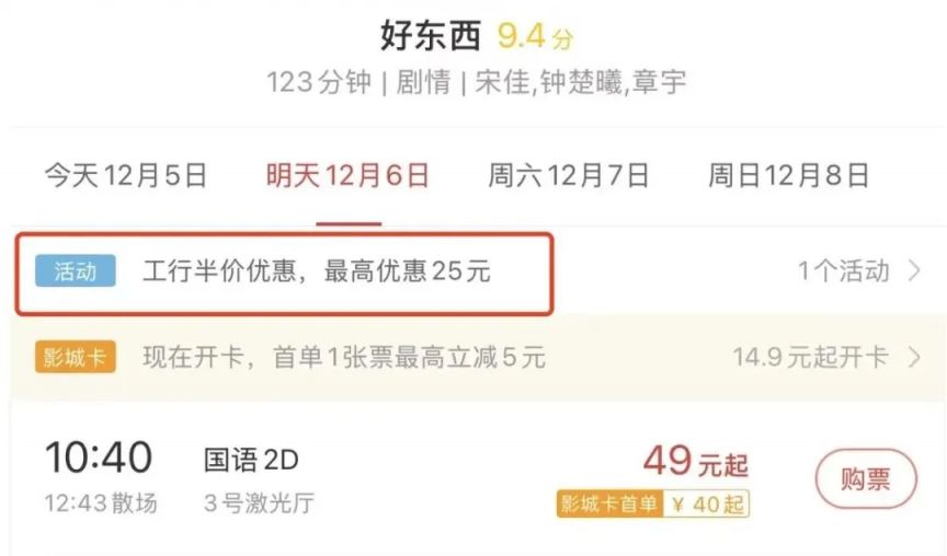 活动平台:中国工商银行、中国银联、猫眼娱乐、淘票票4家机构自有App