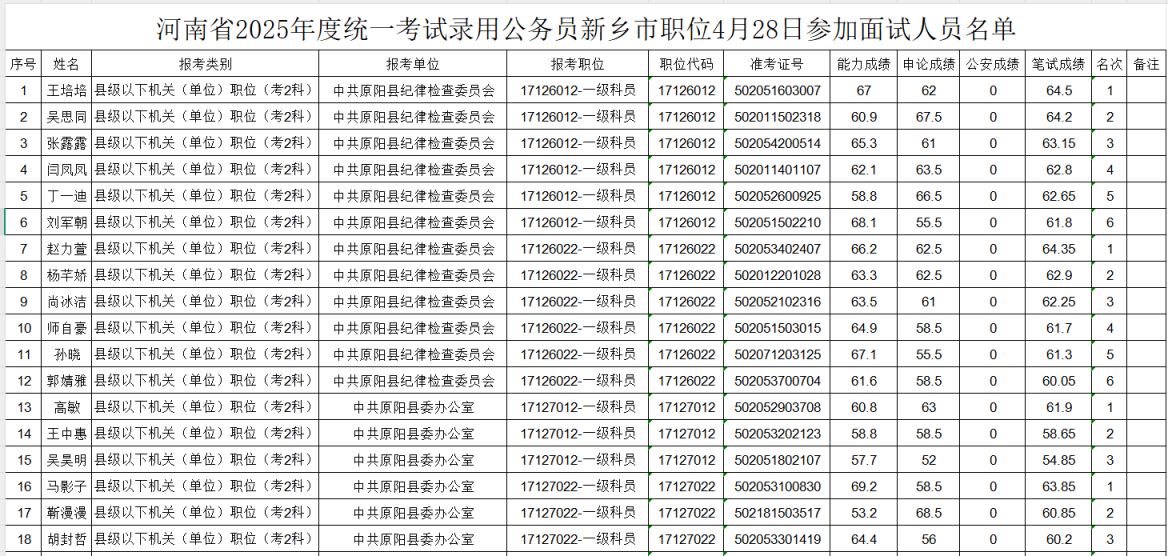 关于新乡市省考面试名单的公布,通常会在官方渠道进行,如河南省人事考试网、新乡市人力资源和社会保障局网站等。如果2025年新乡市省考面试名单于4月28日正式公布,您可以通过以下几种方式获取信息: