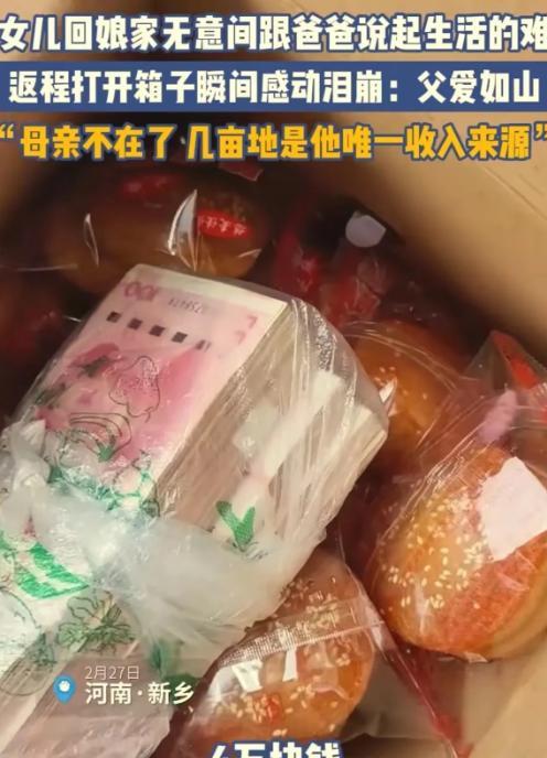 看哭了!河南新乡,女儿回娘家无意间跟爸爸说起生活困难,返程打开面包箱子,发现爸爸偷偷塞了