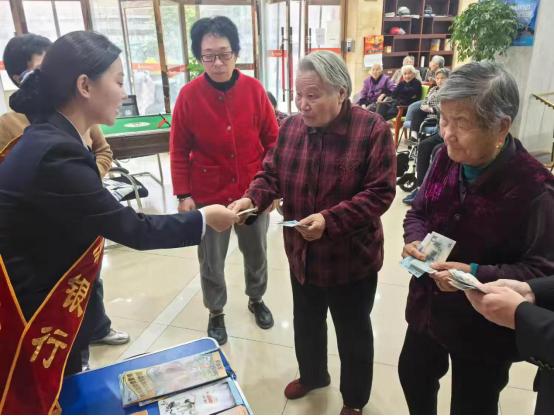 活动现场热闹非凡:反假知识讲座上,讲师结合真实案例拆解假币陷阱;展台前,工作人员拿出真币对照讲解识别技巧;屏幕上,自制短视频用生动画面演示诈骗套路;有奖竞答和抽奖环节更是点燃热情,老人们踊跃举手答题,笑声不断。除了知识普及,分行还贴心提供“兑零换残”服务,现场累计兑换残币2000余元、零钞6000多元,发放零钱包100余个,解决了老人们日常现金使用的难题。